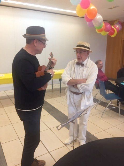 Soudain, un ménestrel se matérialise au milieu de la salle. Armé d'un yukulélé et d'un pupitre, il se charge de mettre une belle ambiance en faisant chanter toute la salle sur un air familier avec des paroles dédiées au... bridge à Champfleury !