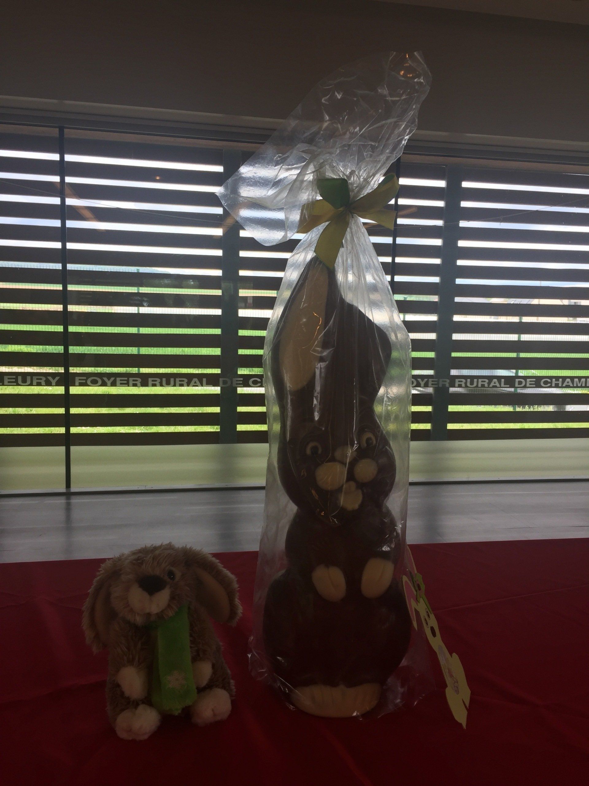Le lapin malin était là mais incognito. Quant au lapin en chocolat il était, bien visible sur l'estrade.
